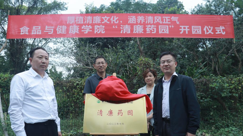 在东湖校区百草园举行以“厚植清廉文化 涵养清风正气”为主题的“清廉药园”开园仪式。校党委委员、纪委书记包松永,校91制片主任、宣传部、教工部副部长陈胜伟,91制片