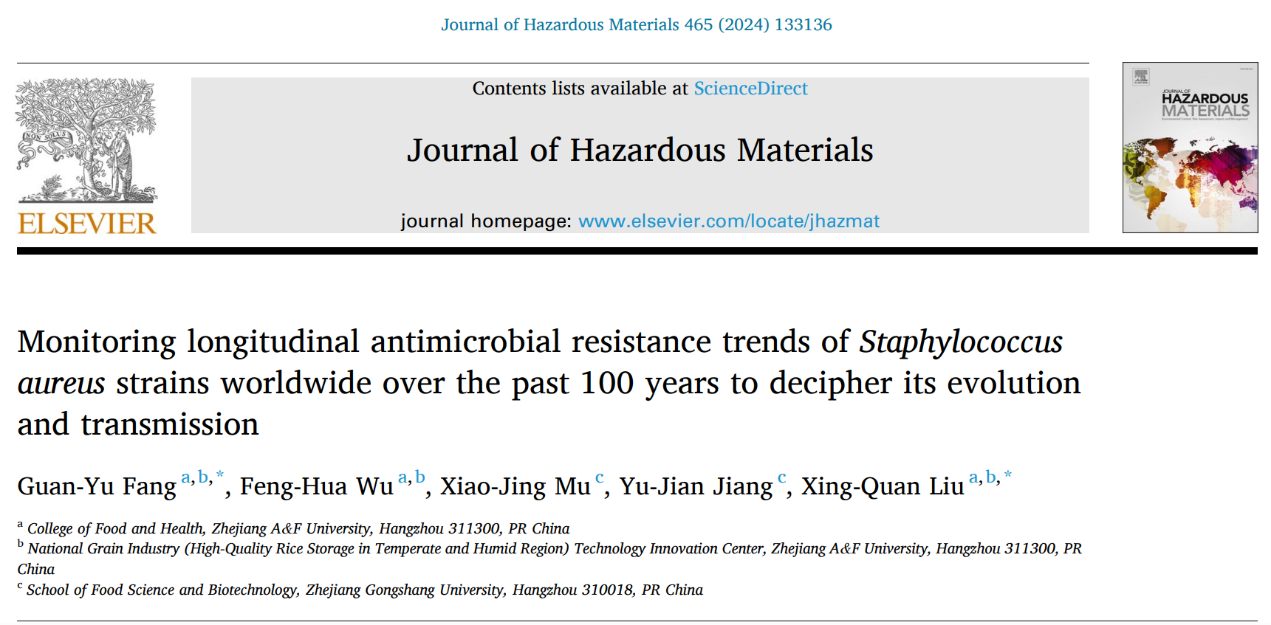 刘兴泉教授团队在国际期刊Journal of Hazardous Materials(中科院一区Top,IF:13.6)在线发表了题为Monitoring longitudinal antimicrobial resistance trends ofStaphylococcus aureusstrains worldwide over the past 100 years to decipher its evolution and transmission的研究性论文。